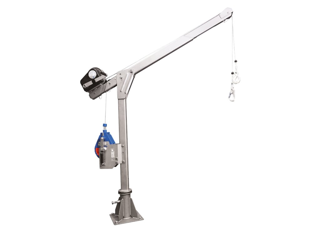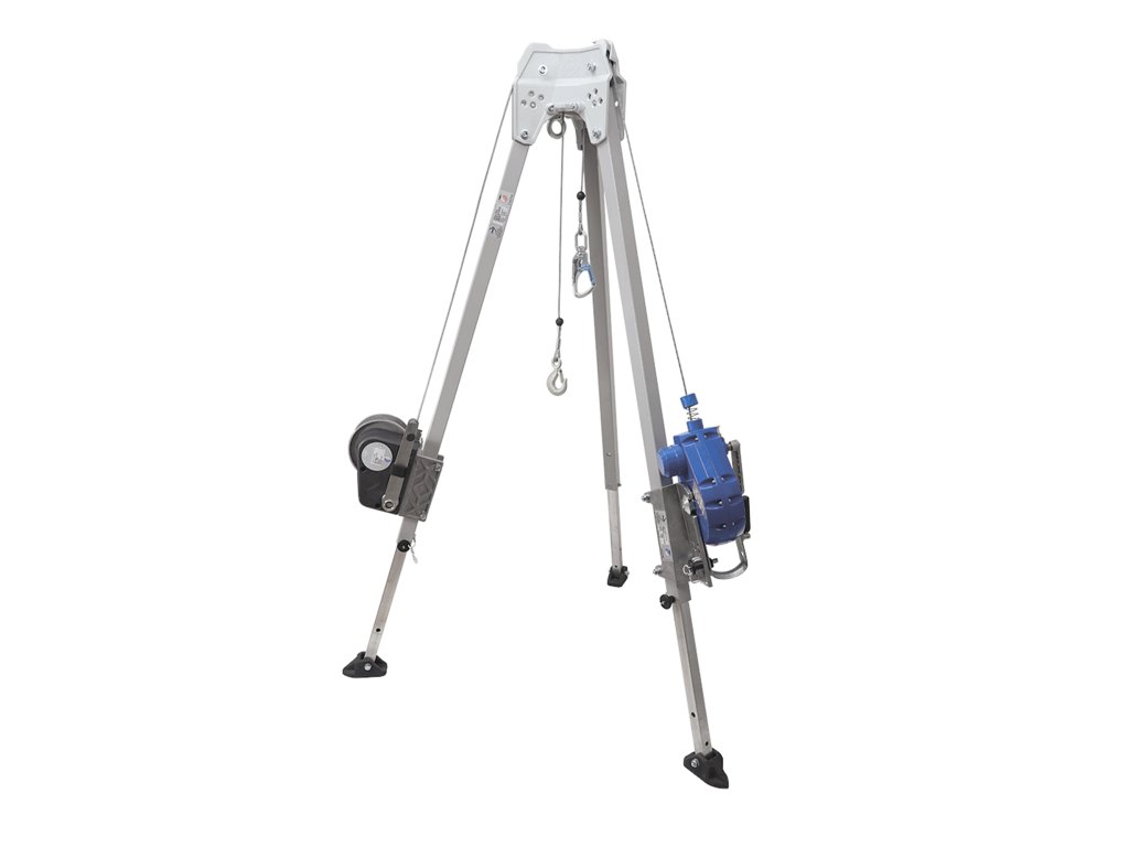 Der Lastenaufzug kann mit zertifizierten Konsolen an der IKAR DB-A3 Dreibeinstativ und dem IKAR ASS-1 Hebezeug befestigt werden