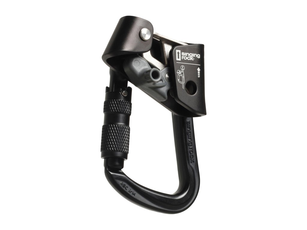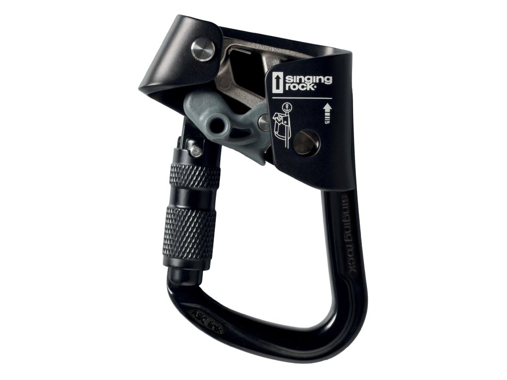 - During installation, the ascender slides onto the carabiner and is secured with a locking screw