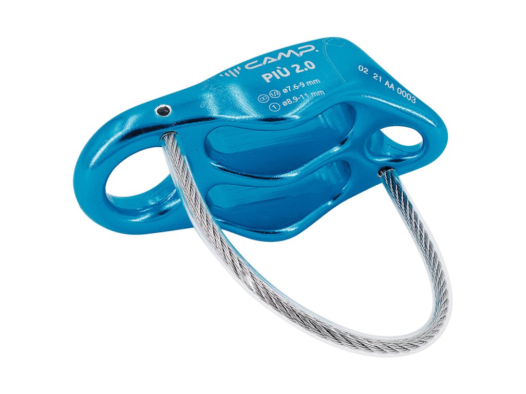 A Piu 2.0 egy új generációs biztosítóeszköz, amelyet kifejezetten a népszerű vékonyabb kötelekhez terveztek. Amikor a kötél a biztosítóeszköz pereménél meghajlik, a bordázatok segítenek a biztosítónak jobb fogást biztosítani, ami növeli a kötél fékezési hatékonyságát, különösen vékonyabb átmérők esetén. A CAMP PIU 2.0 mászóeszköz lehetővé teszi a mászóeszköz elforgatását automatikus reteszelő üzemmódba – a nagy nyílásnak köszönhetően, amelyen keresztül a mászóeszköz karabinerrel a standhoz rögzíthető. Ha engedélyezni kell a biztosítékot automatikus blokkoló módban, elég egy másik karabinert (pl.: CAMP HMS Nitro vagy CAMP HMS Core Lock) az elülső nyílás mögé kifeszíteni, amely a lassú kioldásra szolgál. a kötél terhelés alatt.