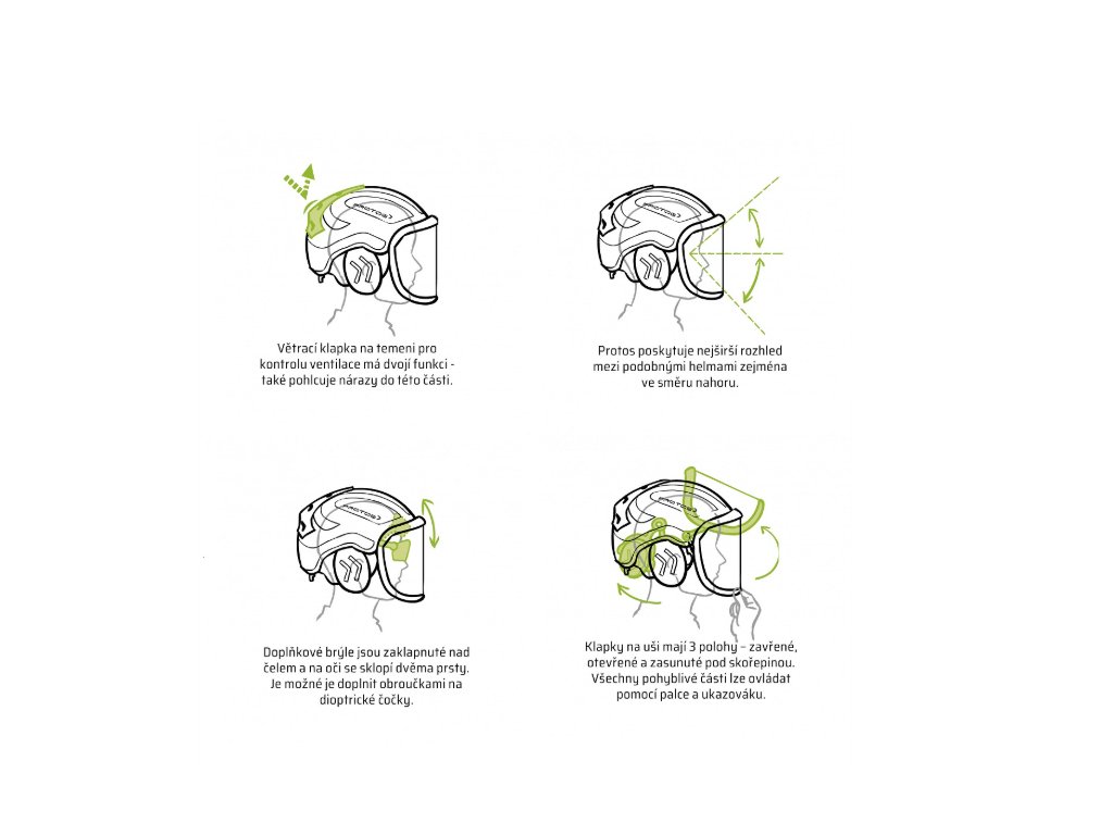 - kiegészítők széles választékával egészíthető ki, mint például állpánt, nyakvédő vagy védőszemüveg, LED-es munkalámpák
