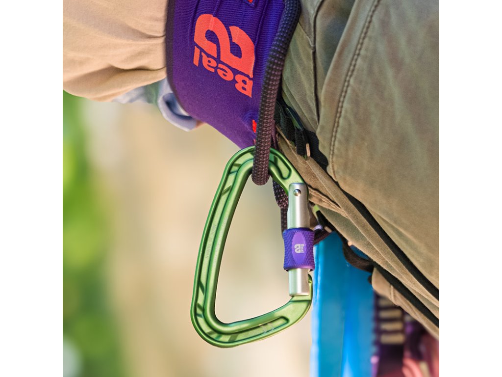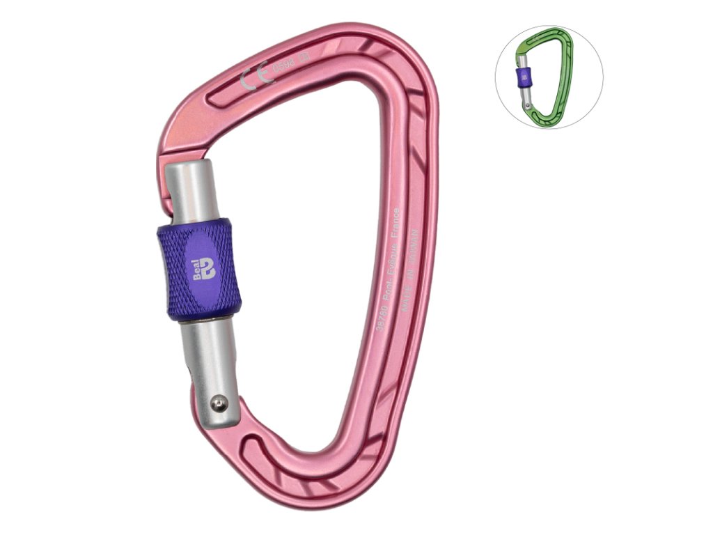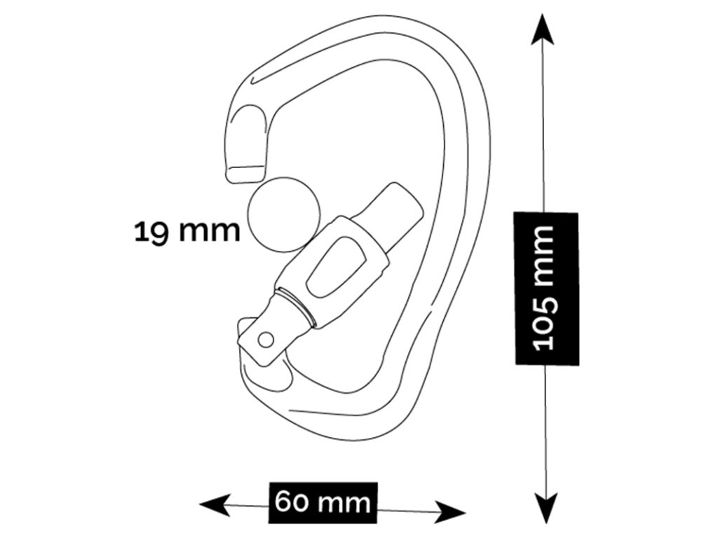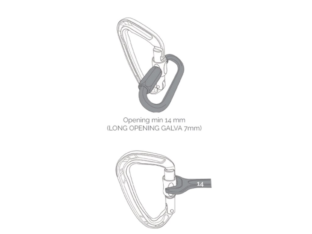 Asymetrická „D“ keylocková karabina se šroubovací pojistkou zámku, upravenou pro pevné dotažení klíčem (14). Karabina Be Quick je vhodná pro zajištění ve štandu.