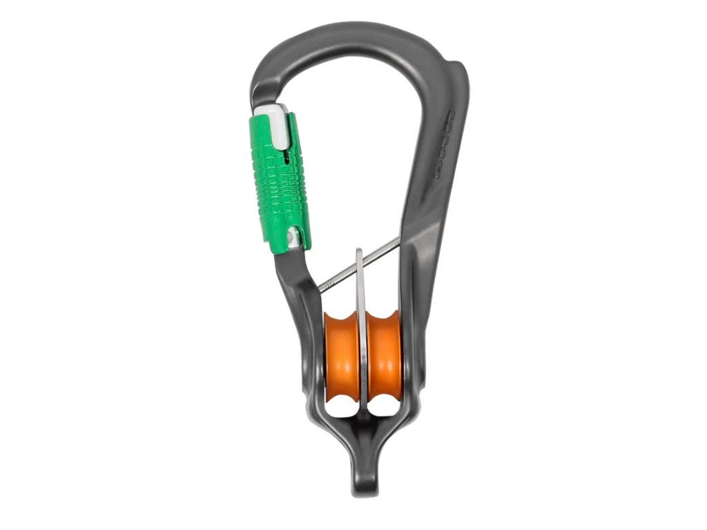 Tato inovativní karabina s integrovanou dvojitou kladkou představuje efektivní řešení pro profesionály v oblasti prací ve výškách, arboristice a záchranných operacích. Je navržena pro optimalizaci lanových systémů, kde je klíčová minimalizace tření a plynulý chod lana. Díky své robustní konstrukci a promyšlenému designu zajišťuje spolehlivost a bezpečnost při manipulaci s břemeny nebo při komplexních záchranných scénářích. Integrovaná dvojitá kladka umožňuje snadné a rychlé zakládání lana, zatímco karabina samotná poskytuje pevný a bezpečný spojovací bod. Její ergonomický tvar podporuje intuitivní manipulaci i v náročných podmínkách. Tato karabina je testována v souladu s přísnými průmyslovými standardy, což zaručuje její odolnost a dlouhou životnost i při intenzivním používání. Její univerzálnost ji činí vhodnou pro širokou škálu aplikací, od jednoduchých kladkostrojů po složité systémy pro zvedání a spouštění.