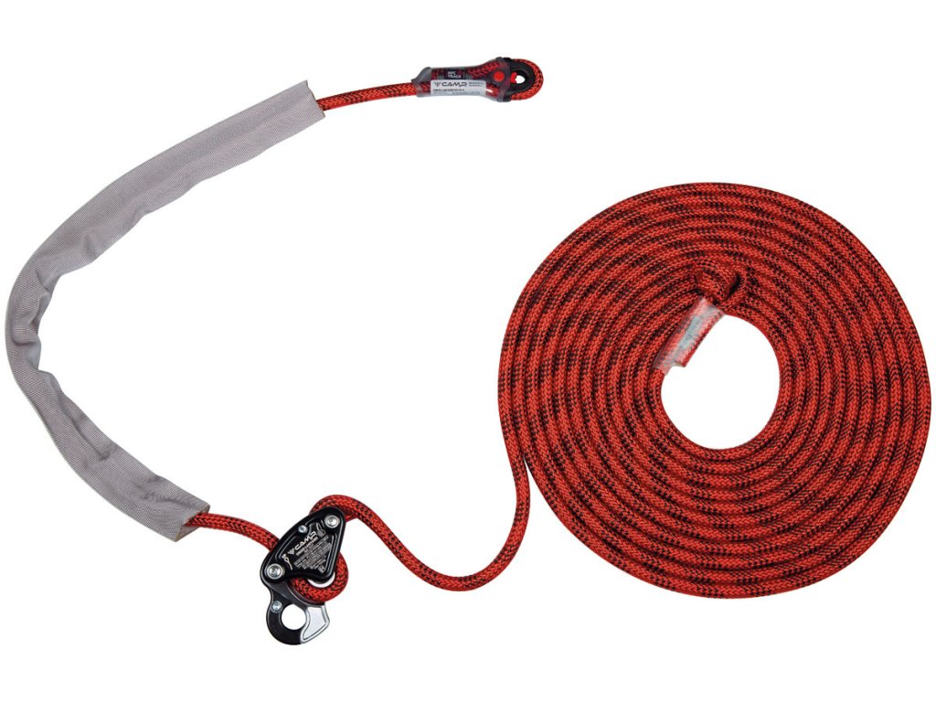 - Lanyard ze semi-statického lana C.A.M.P. Iridium 11 mm se spojeným jádrem a opletem (Heatcore)