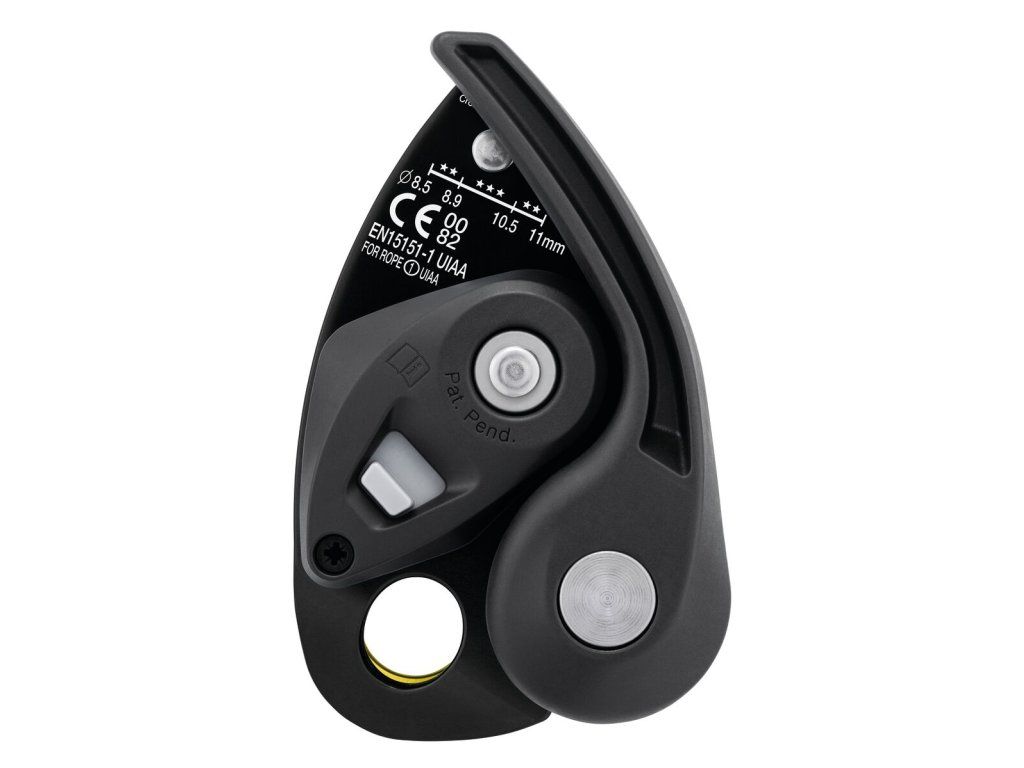 - Ergonomická rukojeť umožňuje snadné odblokování lana a plynulé spouštění lezce