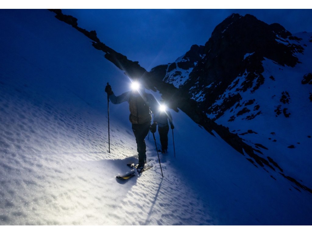 - Dělená konstrukce hlavového pásku (patent Petzl) se snadno nastavuje a poskytuje optimální oporu při běhu nebo lyžování