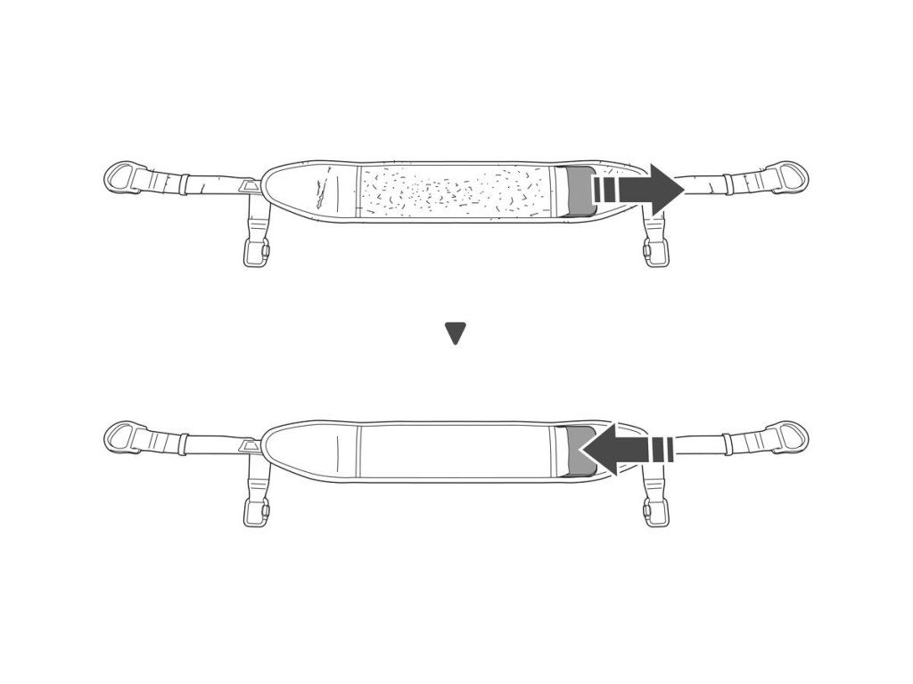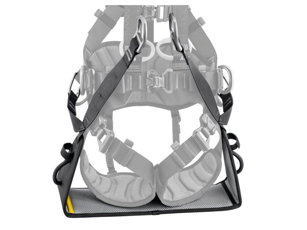 - Instaluje se pomocí dvou maticových rychlospojek (součástí balení) do speciálních slotů po stranách postroje pro lepší rozložení zátěže mezi pásem a pracovní sedačkou.