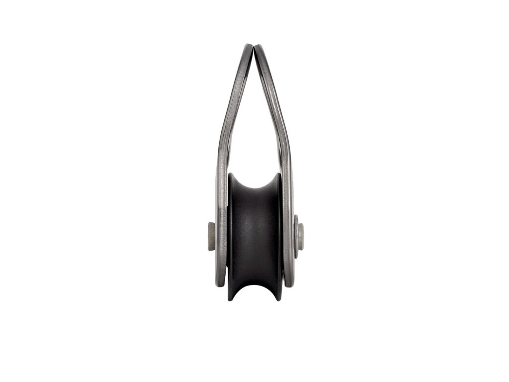 - Tarcza bloczka jest wykonana z poliamidu z recyklingu, a ścianki boczne z aluminium, co zapewnia doskonały stosunek wytrzymałości do masy.