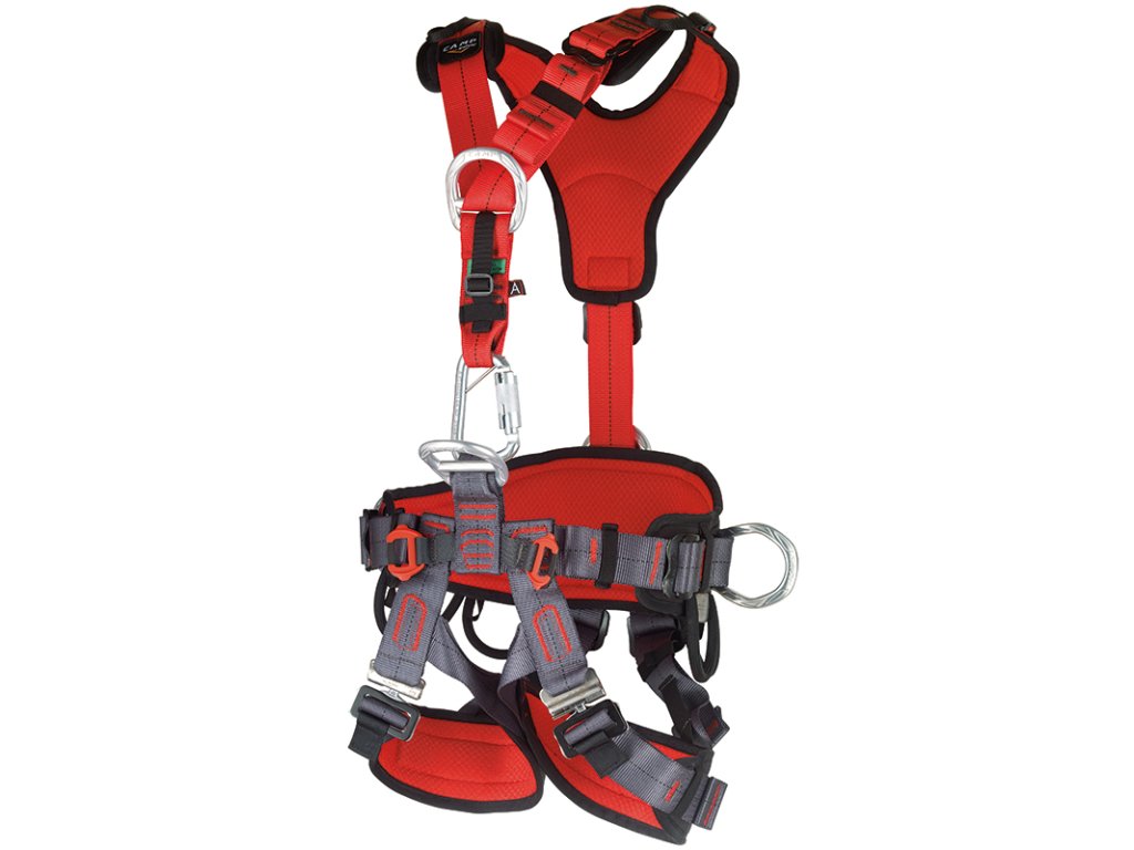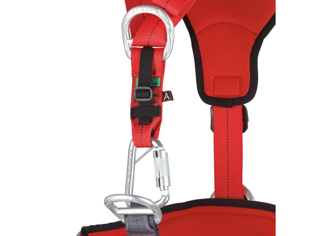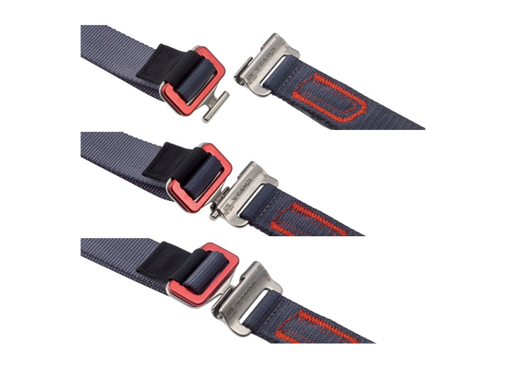 Uprząż zawiera stalowy karabinek łączący z trójdrożnym zamkiem 3Lock i dodatkową wewnętrzną blokadą zapobiegającą skręcaniu się karabinka. Uprząż jest dostępna w dwóch rozmiarach.