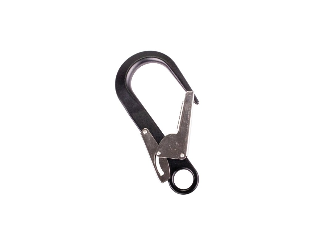 + 2x Dvojčinný hák na lešení vyrobený z hliníku, který se obvykle používá ve spojení s bezpečnostním lankem pro zachycení pádu pro rychlé připevnění na lešení nebo ocelové konstrukce.