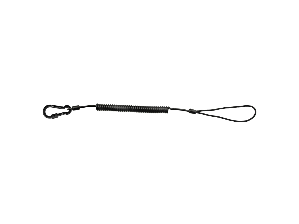 Spirálové lanko je vysoce kvalitní a elastické a i po silném zatížení si zachovává „tlumicí“ účinek. Má dlouhou životnost a nekroutí se. V uvolněném stavu má délku cca 47 cm. Je odolné vůči UV záření a lze jej čistit běžnými čisticími prostředky. Barvu karabiny lze zvolit, což je velmi užitečné například pro barevné označení vybavení.