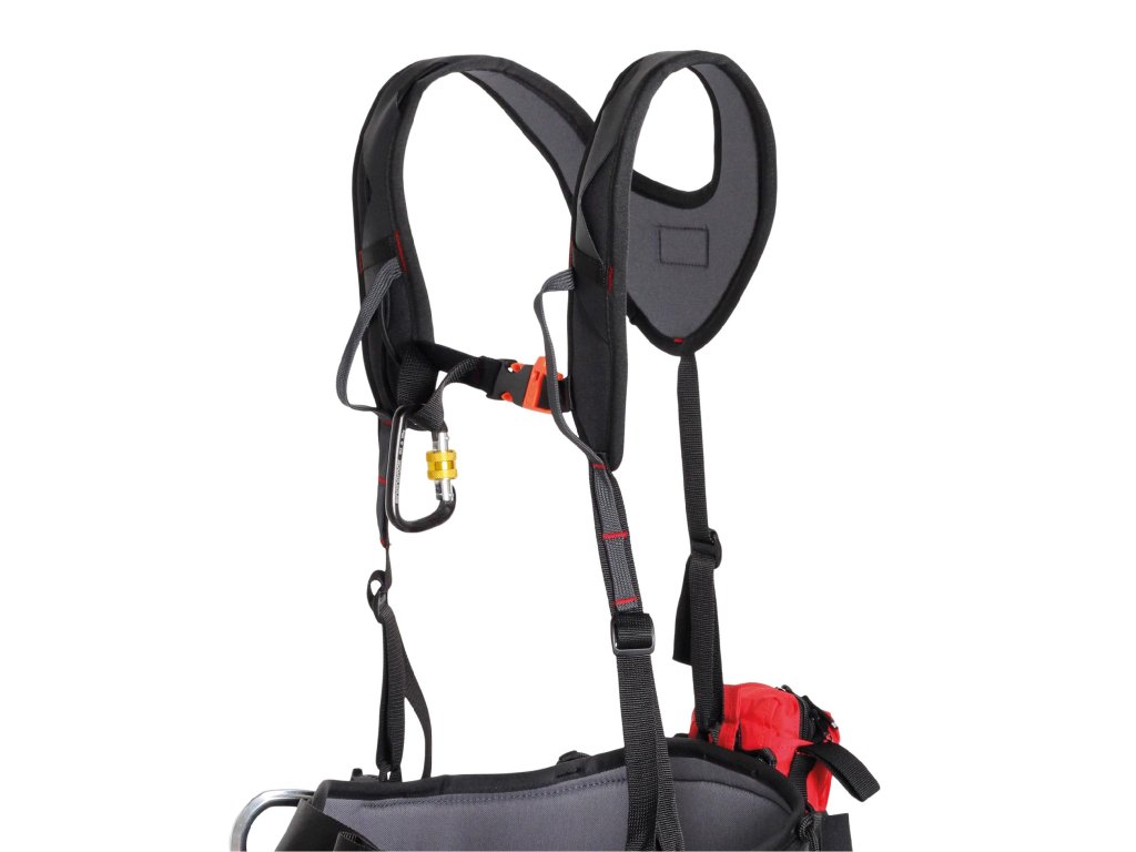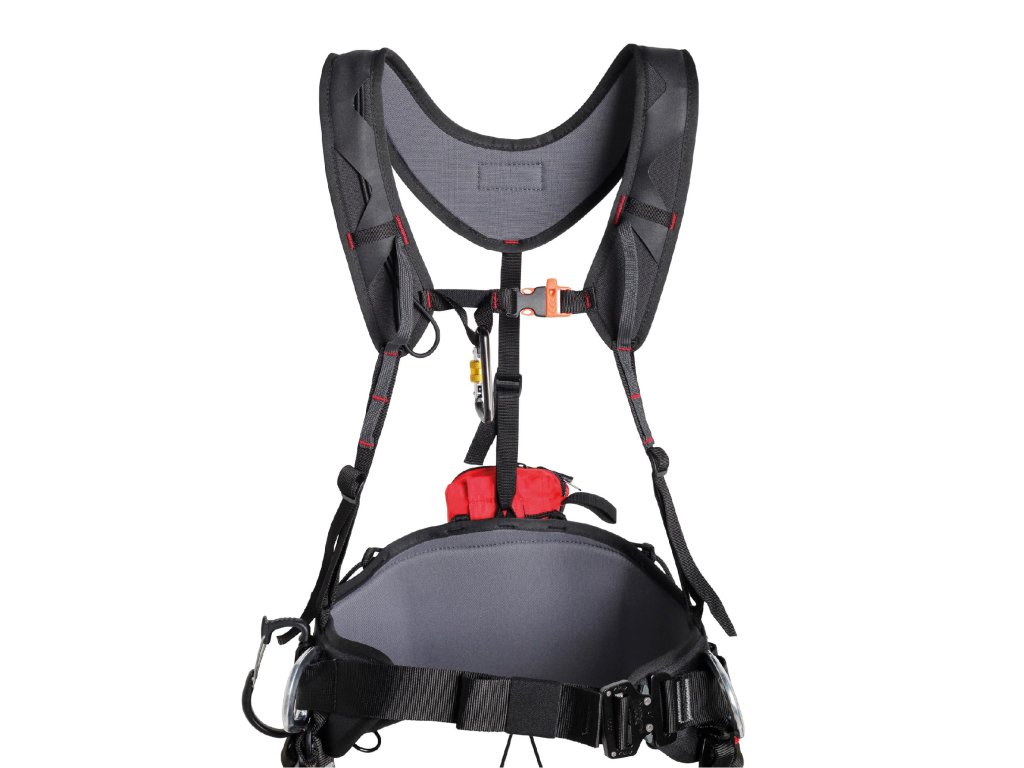- v ramenním polstrovaní je na každé straně tunýlek pro provléknutí přítažné gumičky, která je speciálně určena pro jednolanovou techniku (SRT)