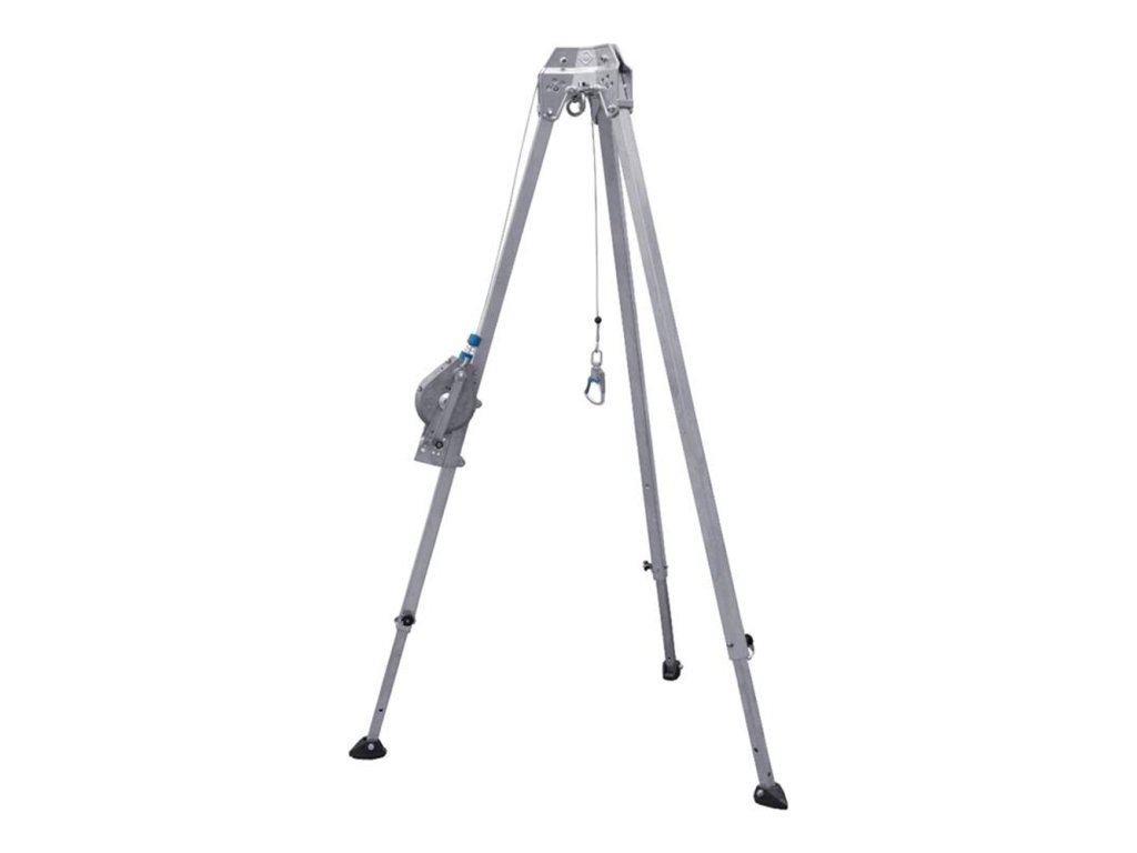 Přenosná trojnožka s nastavitelnými nohami a 3 integrovanými kladkami. Konstrukce hlavy umožňuje nastavení nohou v mnoha úhlech bez použití aretačního řetězu mezi patkami. Ideální ekonomické řešení pro stísněné prostory, zajištění proti pádu a záchranu.