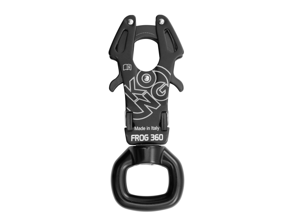 FROG 360 kombinuje legendární karabinu FROG s otočným kloubem navrženým tak, aby byl šetrný k textilním prvkům. Umožňuje přímé spojení s textilními komponenty a vytváří spojení odolné proti kroucení. Díky inovativnímu automatickému systému zámku umožňuje rychlé a bezpečné spojení.