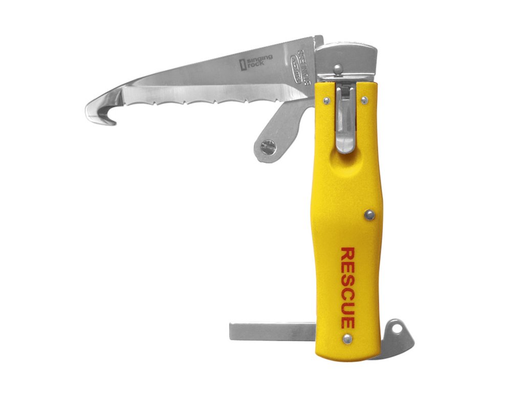 - ostří se speciálním tvarovým výbrusem a háčkem pro řezání například lan, popruhů nebo bezpečnostních pásů ve voze