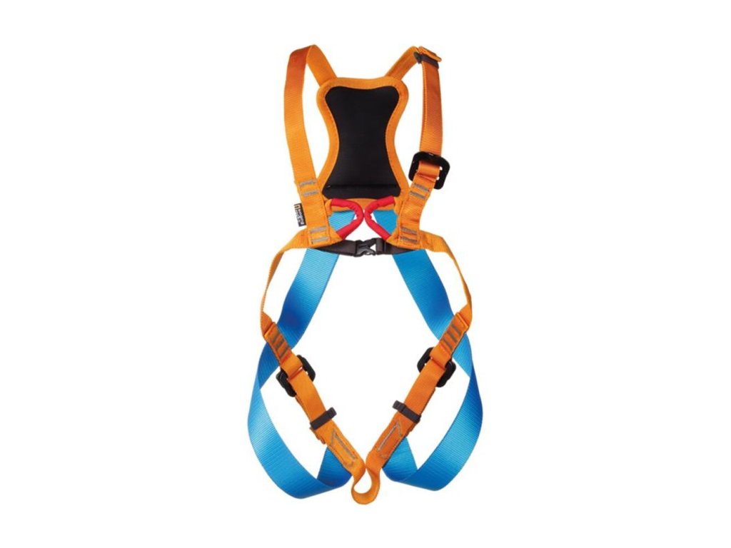ZAZA / C5069Plně nastavitelný pohodlný celotělový úvazek v jasných barvách určený pro nejmenší horolezce, kteří chtějí začít své pokusy na stěně nebo na skále.