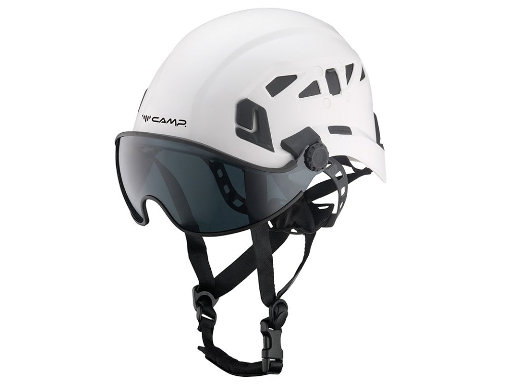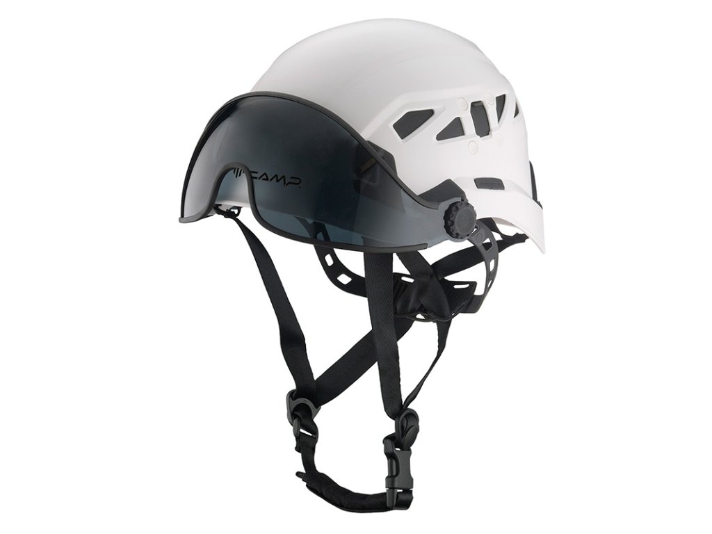 Ochranný štít na tvár z 2 mm polykarbonátu tvarovaného za tepla. CAMP Safety Ares Visor je kompatibilný so všetkými modelmi prilieb CAMP Ares. Jednoduchá inštalácia bez použitia náradia. Tvar štítu kopíruje kontúry nosa a lícnych kostí, čo zaručuje optimálnu viditeľnosť. Tuhosť závesu možno nastaviť pomocou skrutiek na bokoch štítu. Povrchová úprava zabraňuje zahmlievaniu a zabezpečuje odolnosť proti poškriabaniu. K dispozícii v dvoch verziách: čisto priehľadná a zatmavená.