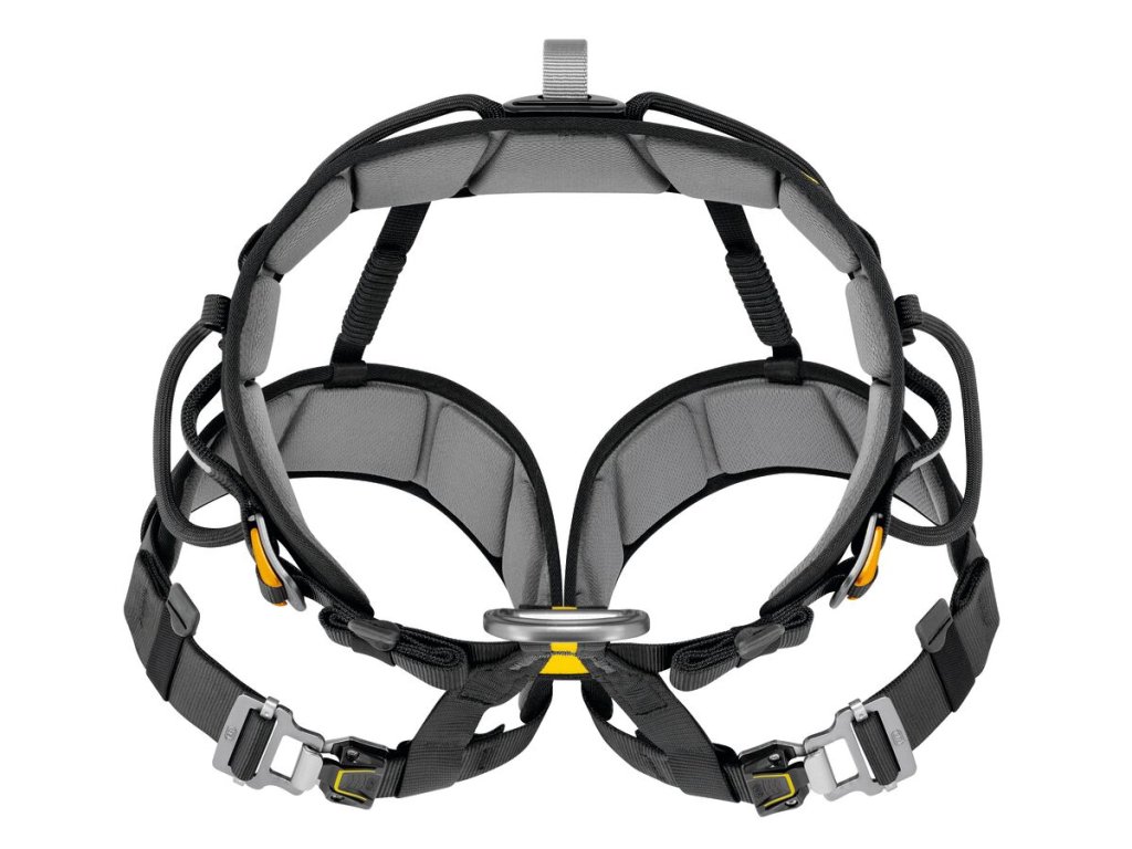 - Predný upevňovací bod rozdeľuje záťaž medzi pás a popruhy na nohy pri zavesení