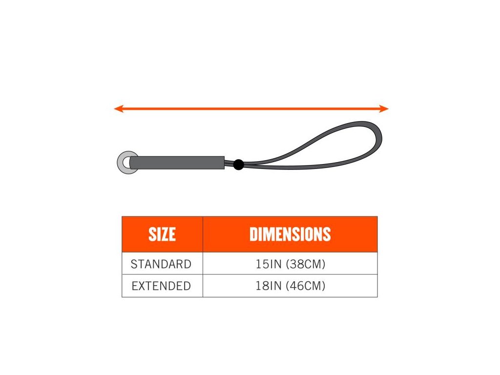 Tento kotevní nástavec, zkonstruovaný pro všestranné a bezpečné připevnění k nářadí, má roztažitelný konec s nylonovou smyčkou plus nastavitelný zámek hlavně na jednom konci a pokovený D-kroužek na druhém. Jakmile je smyčkový konec ocasu připevněn k nástroji nebo kotevnímu bodu, D-kroužek funguje jako otvor pro upevnění lanka nástroje.
